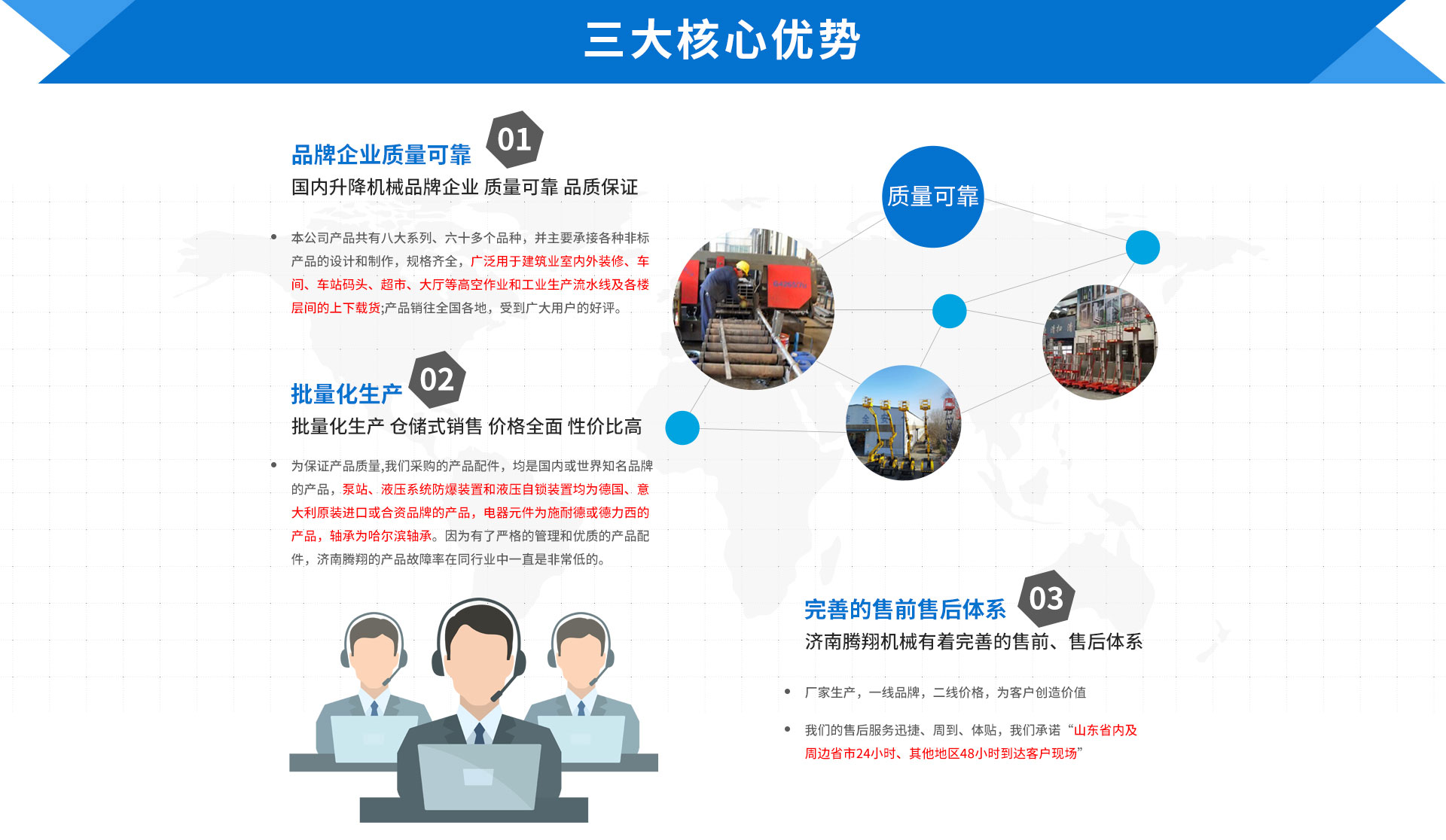 濟(jì)南騰祥機(jī)械有限公司是一家物流搬運(yùn)設(shè)備、高空作業(yè)設(shè)備的現(xiàn)代化企業(yè),擁有全國(guó)MRO服務(wù)經(jīng)驗(yàn)的騰祥機(jī)械公司進(jìn)軍高空作業(yè)市場(chǎng),以產(chǎn)品為服務(wù)基點(diǎn),逐步擴(kuò)大工業(yè)品的服務(wù)范圍。 查看更多>>
